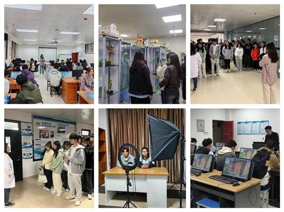 活动当天,新生在指导教师的带领下,分组滚动参观。主要参观的实验室有:工程管理沙盘模拟实训室、画法几何模型陈列室、工程制图实训室、工程力学实验室、电子商务创新实验室和电子商务实验室等13个实验实训室。实验室讲解员针对实验室布局、仪器设备、日常工作等内容分别进行详细介绍,就一些基础操作进行现场示范。同学们认真听取讲解,积极交流和谈论,有的掏出手机拍照,有的点开软件尝试,展现出极大的兴趣。通过讲解,同学们不仅了解了实验室的工作环境和安全要求,也了解到了专业的研究领域和相关成果。
