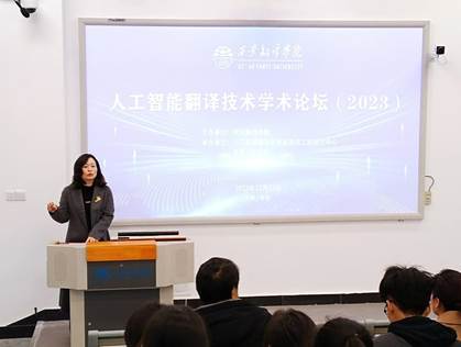 论坛首先由西安翻译学院副校长王利晓教授致辞。王校长向各位嘉宾和与会者介绍了我校人工智能翻译陕西省高校工程研究中心的筹备和建设情况,并阐述了人工智能翻译技术学术论坛在我校召开对学校科研工作的重要意义。