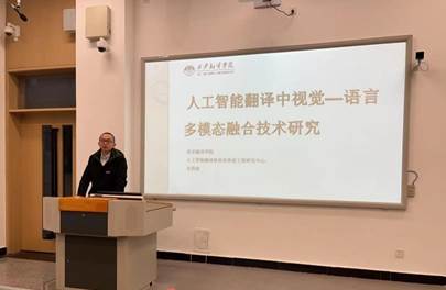 第五位报告人,西安翻译学院国产又粗又黄又爽科研副院长,人工智能翻译陕西省高校工程研究中心研发组组长尤国强教授介绍了人工智能翻译技术的发展现状,人工智能翻译技术中视觉、语言的模态特征提取方法,以及人工智能翻译技术中视觉、语言模态特征的融合处理方法。