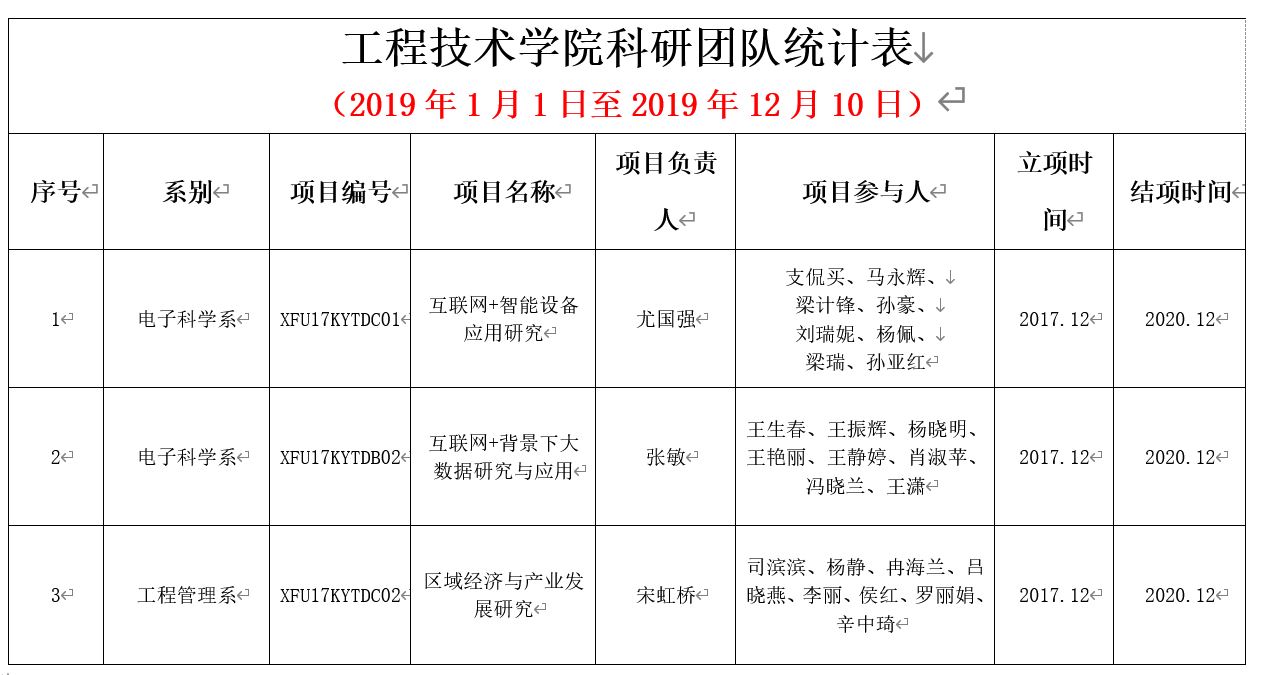 工程技术学院科研团队统计