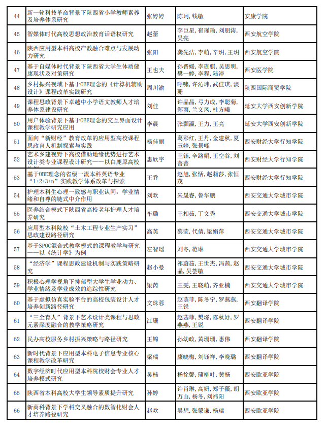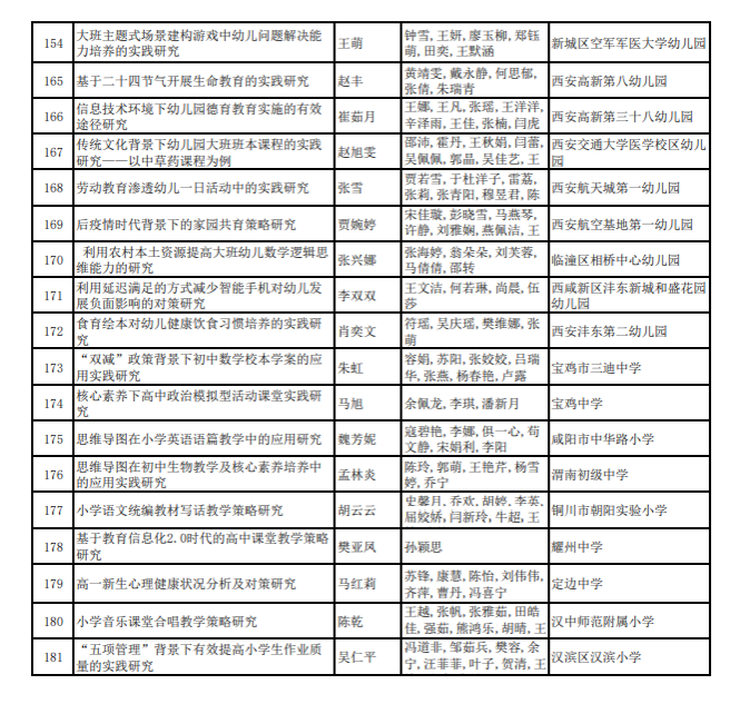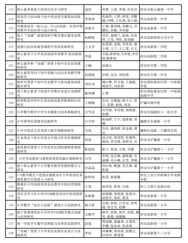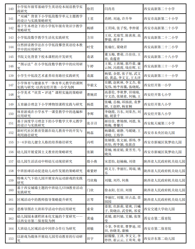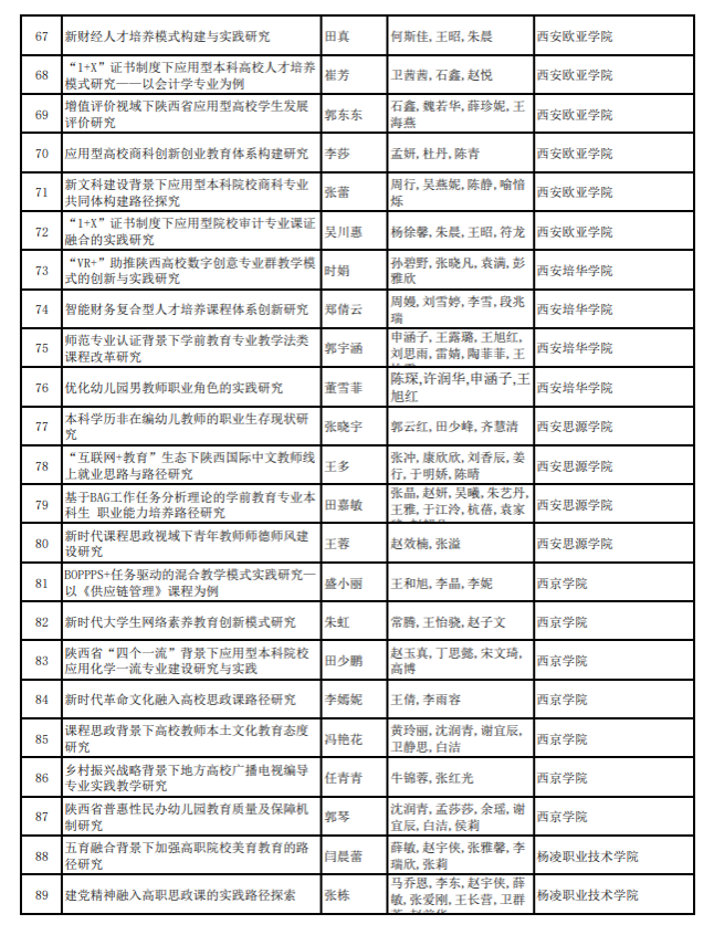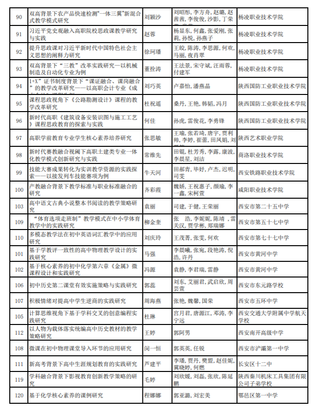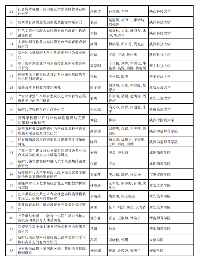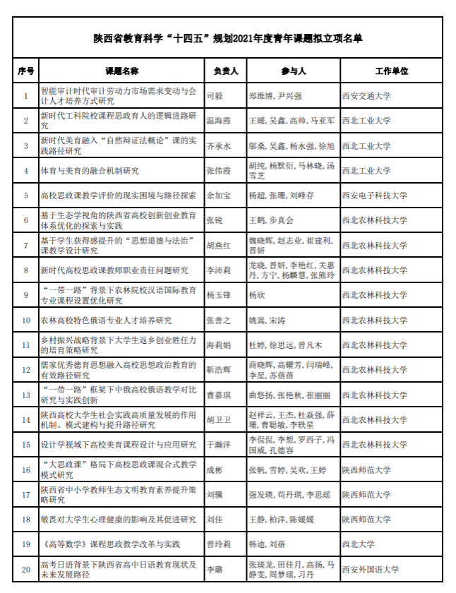 陕西省教育科学“十四五”规划2021年度青年课题拟立项名单