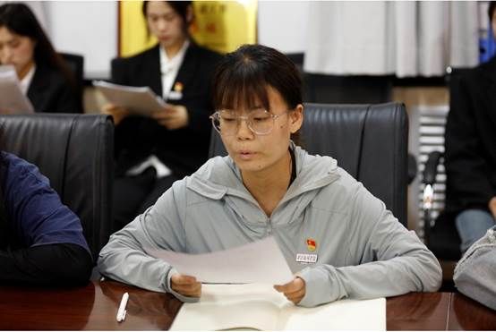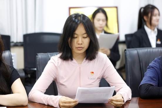会议伊始,由沈平利同志向大会介绍预备党员情况,支部组织委员池瑞博同志代表支部委员会向大会报告预备党员转正征求党内外群众意见情况以及支部委员会审查情况:经过座谈,广泛征求意见,均认为尹俏文等8名同志表现突出,各方面表现优秀,在预备考察期内能发挥党员应有作用,起到了模范带头作用,均同意尹俏文等8名同志按期转为中共正式党员。经支委会提议,支部大会举手表决,推选出池瑞博同志为监票人、张燕芳同志为计票人,会议表决采取无记名投票方式进行表决。