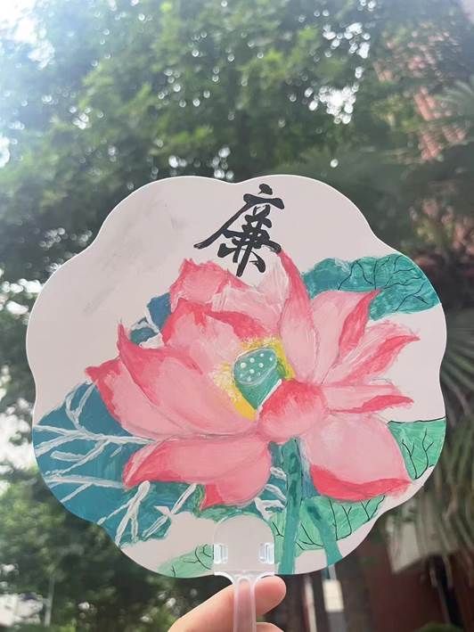 活动现场气氛热烈,老师同学们积极踊跃参加,纷纷沉浸在创作廉洁绘画的乐趣中,他们以纸扇为媒,乘颜料之舟,将手中的画笔和颜料相融合,描绘出对廉洁之风的美好向往与崇高追求。每一把纸扇都是心灵的廉洁体现,每一个线条都是对清廉的勾勒,通过纸扇的绘画充分表达了大家对廉洁的追求与自身的思想体现。