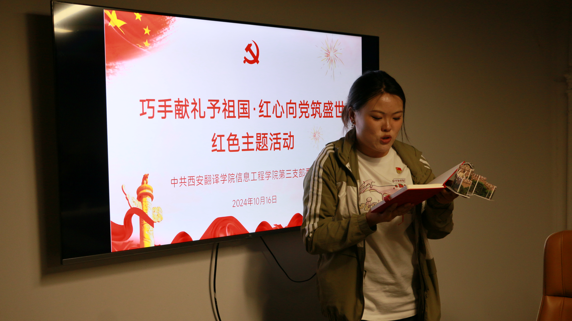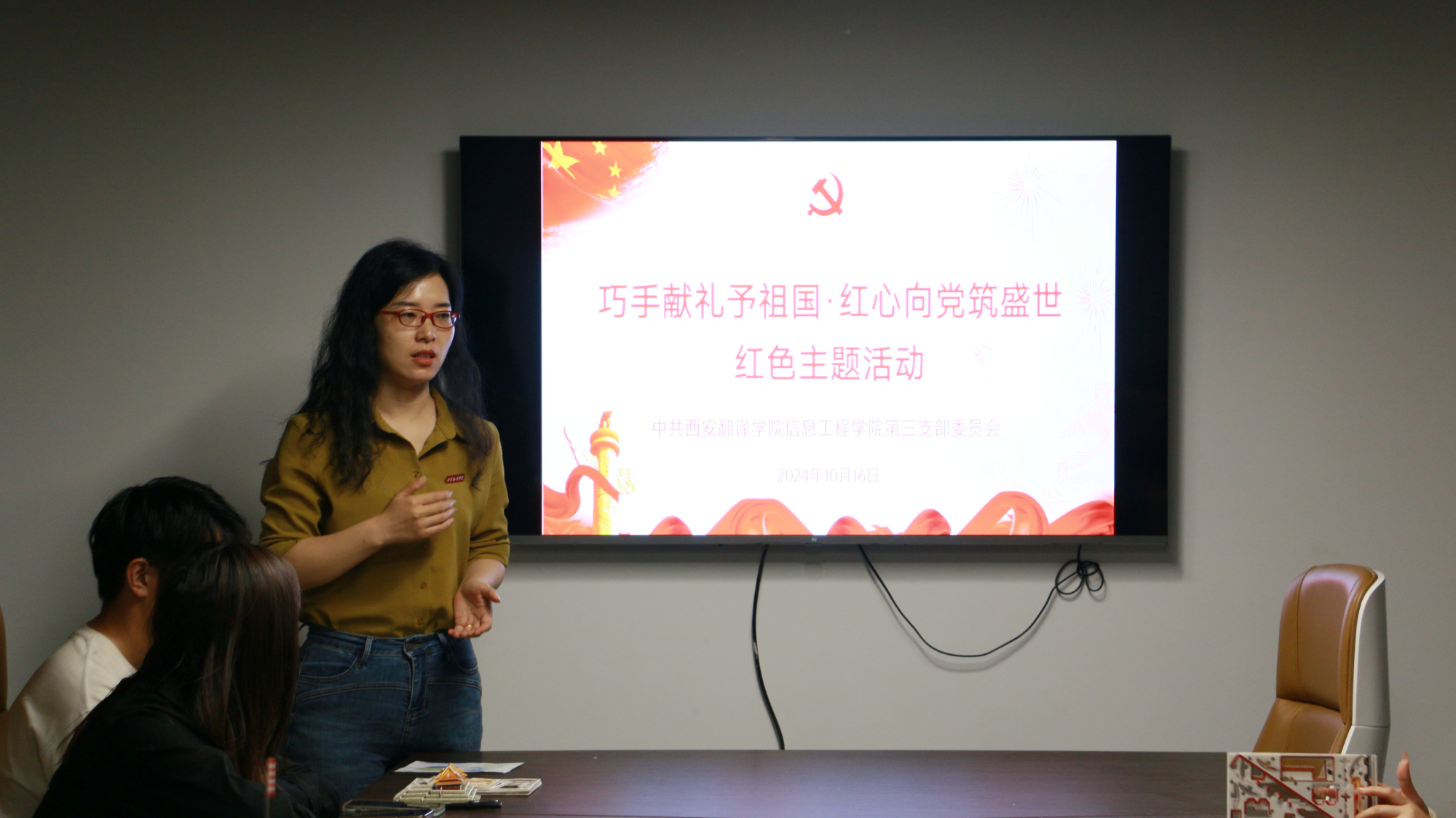 为增强学生党员的爱党爱国情怀,推进爱国主义教育走实走深,引导其担当时代责任,让红色基因、革命薪火代代传承,同时营造十月热烈国庆的节日气氛。2024年10月16日,国产又粗又黄又爽第三党支部组织开展“巧手献礼予祖国·红心向党筑盛世”红色主题活动。