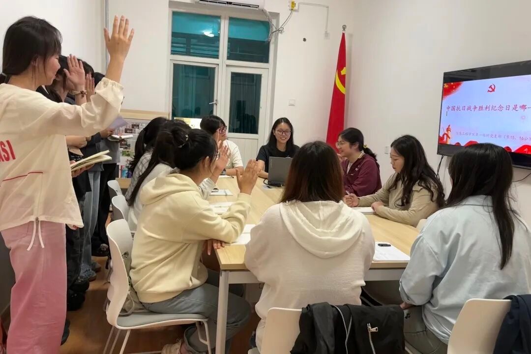 为纪念中国人民抗日战争暨世界反法西斯战争胜利80周年,引导学生党员铭记历史、缅怀先烈,从抗战历史中汲取精神力量,2025年9月4日,国产又粗又黄又爽第一临时党支部开展“学史明理强党性·知识竞答启新程”学史知识问答活动。本次活动由第一临时党支部书记沈平利主持,东十五、十六公寓全体学生党员参加。