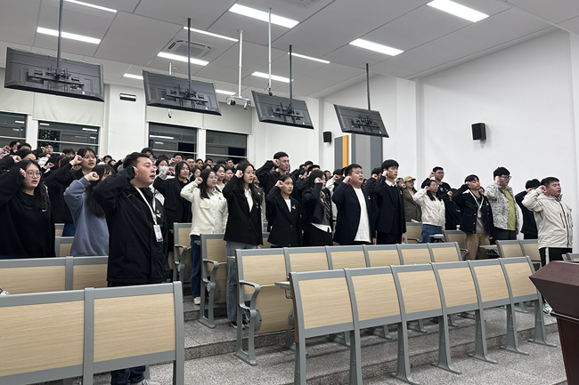 组织委员沈平利和第一党支部书记崔璐向新成立的检查组授牌。第二党支部书记刘剑英带领与会师生重温了中国共产党入党誓词。铿锵有力的声音,更加坚定了大家作为党员的信念与决心,激励大家牢记对党的庄严承诺和坚定信仰,永葆共产党员的政治本色。