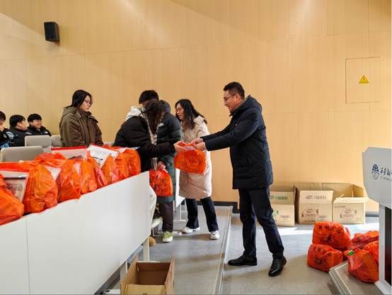 最后学院领导和老师为考研学子们发放了慰问食品以及“连中三元”文具套装,祝愿大家一击即中!