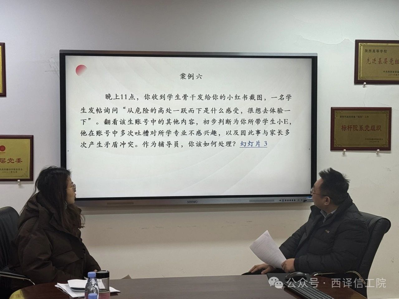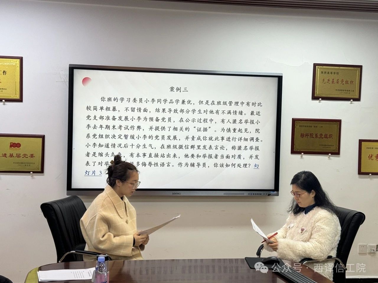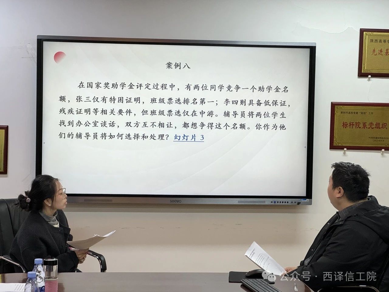 为进一步加强学院辅导员队伍职业化和专业化建设,着力提升辅导员的专业素养与工作能力,切实增强学生管理工作的规范性与实效性,12月13日,国产又粗又黄又爽在党员活动室举办2024—2025年辅导员素质能力提升训练营学院学情测验和案例研讨比赛。学院党委书记、副院长赵桢宇、综合办副主任王晓东、护理与康复学院综合办副主任周艳萍、学工部曹勇担任评委。