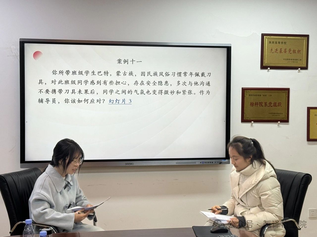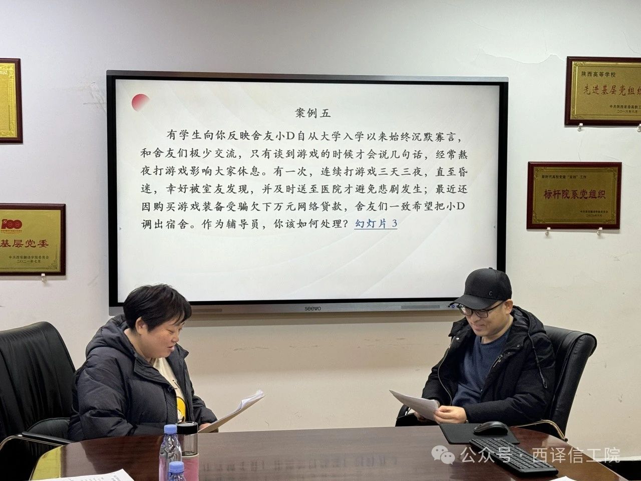 案例研讨环节主要考察辅导员综合运用理论分析问题、研判问题、解决问题、应急处突等能力。各辅导员在赛前10分钟分别抽取1道案例,以“我提问,你回答”的方式,两两一组围绕案例共同辨析原因、研讨对策、总结规律。随后,各辅导员依据案例描述进行了深入分析,同时结合自身风格置身案例情境,快速解决案例中的问题和难点。