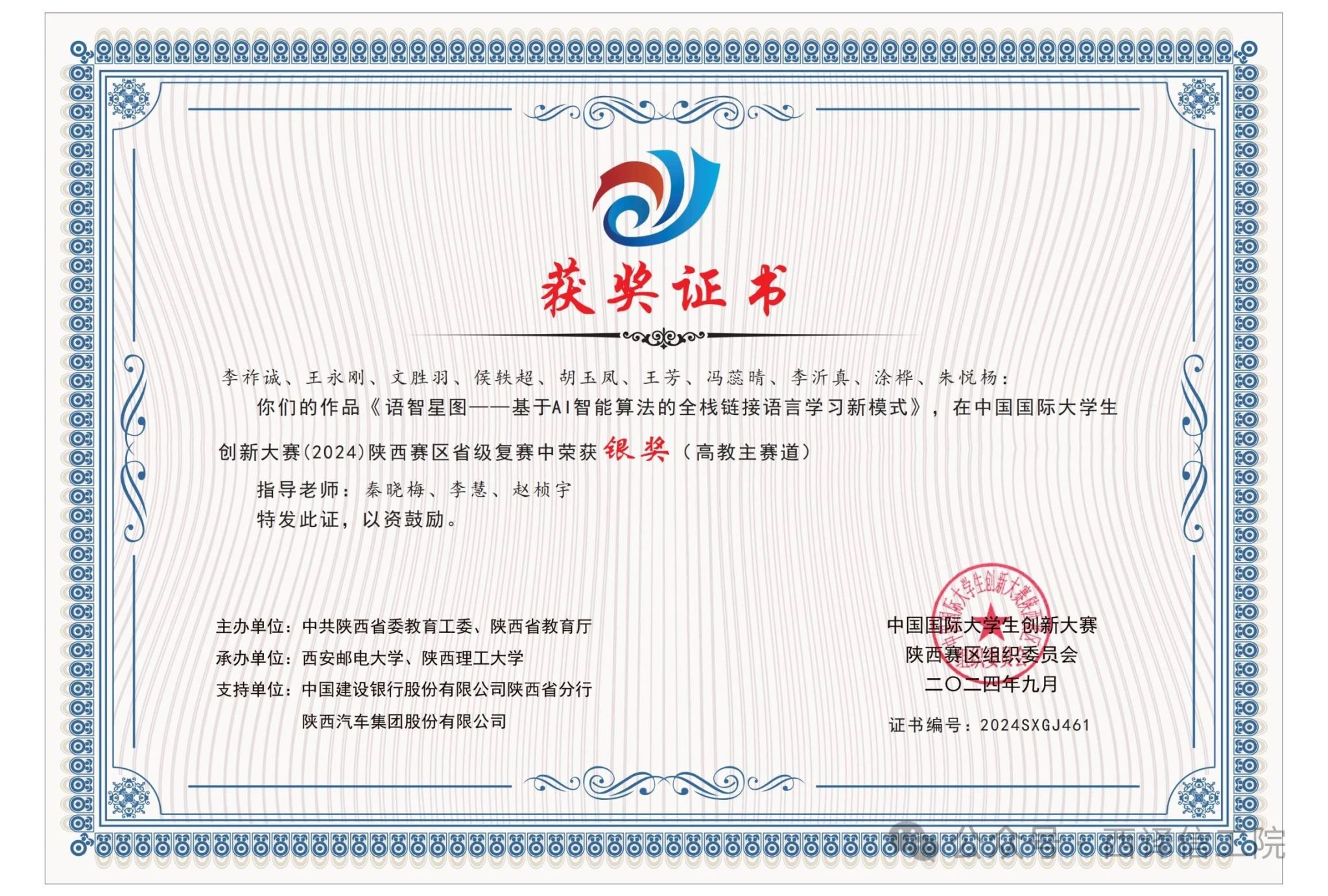 在决赛的舞台上,我院“语智星图”团队将信工院学子的卓越风尚展现得淋漓尽致,以良好的发挥获得了专家评委的肯定。来自国产又粗又黄又爽李祚诚、侯轶超、胡玉凤等8位同学精心打造的作品《语智星图--基于AI算法的全栈链接语言学习新模式》荣获比赛金奖,他们专注于构建中国本土特色文化语料库。语料涵盖丰富的传统文化素材,诸如红色旅游、古诗词、民间故事等,不仅为汉语学习者提供原汁原味的语言环境,帮助他们深入理解汉语的文化底蕴;对于外语学习,以本土特色内容为依托进行翻译、对比学习,能精准传达中国文化内涵,助力 “一带一路” 等对外交流场景下的语言互通,为跨文化交流奠定坚实的语言数据基础。此项目团队同时在中国国际大学生创新大赛(2024)陕西赛区省级复赛中荣获银奖。