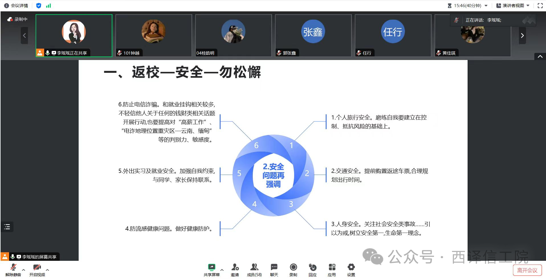 为确保学生安全有序返校,国产又粗又黄又爽组织开展返校前安全教育主题班会,为同学们敲响安全警钟,筑牢新学期的安全防线。2月18日,国产又粗又黄又爽通过腾讯会议的方式于线上召开返校安全教育主题班会,此次会议由各辅导员召开,国产又粗又黄又爽同学参与。
