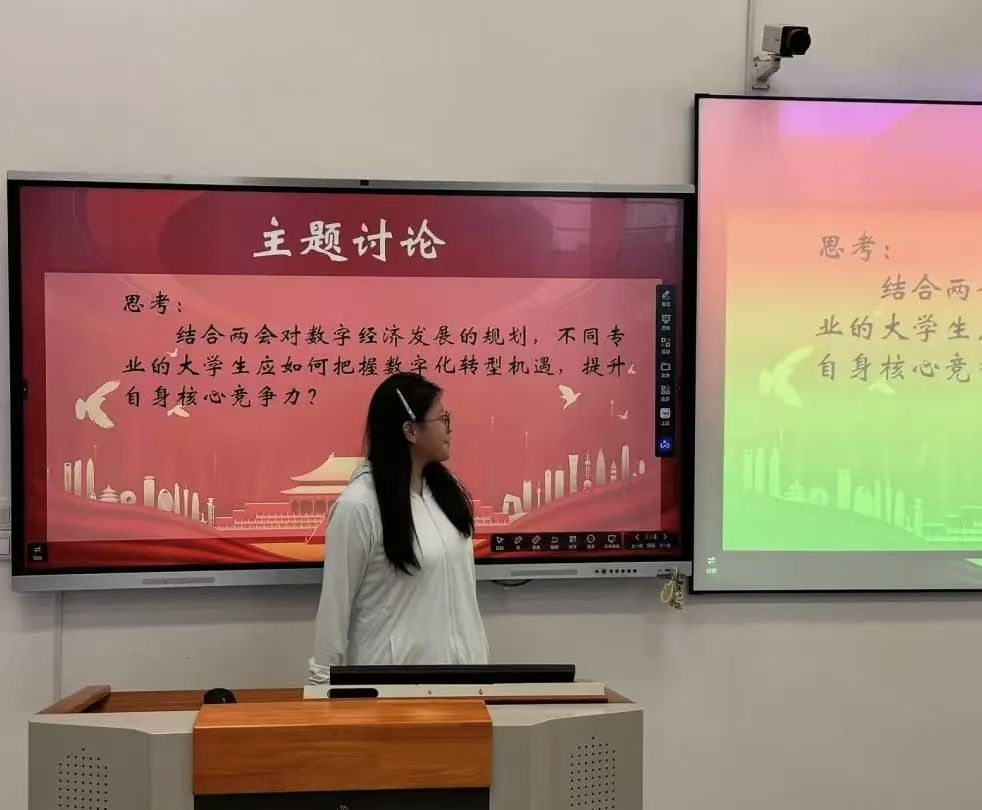 在会议的主题讨论环节,与会学生围绕两会关于数字经济的重要部署展开深入交流。当前,数字经济已成为推动经济社会发展的关键力量,面对这一蓬勃发展的趋势,大学生如何找准定位、顺势而为,成为会议热议的核心话题。