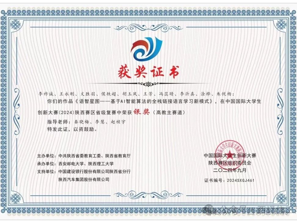在第十五届全国大学生电子商务“创新、创意及创业”挑战赛陕西赛区选拔赛中,学院两支团队获常规赛省级一等奖,一支团队获实战赛省级二等奖;在首届全国大学生新文科实践创新大赛总决赛中“语智星图”团队斩获金奖,并在2024年中国国际大学生创新大赛(陕西赛区)省级复赛中荣获银奖;第三届全国大学生数字贸易综合技能大赛西北赛区,我院3支队伍均获二等奖,其中“对不对不对不队”入围全国总决赛。这些成绩彰显了学生们卓越的创新思维和实践能力。