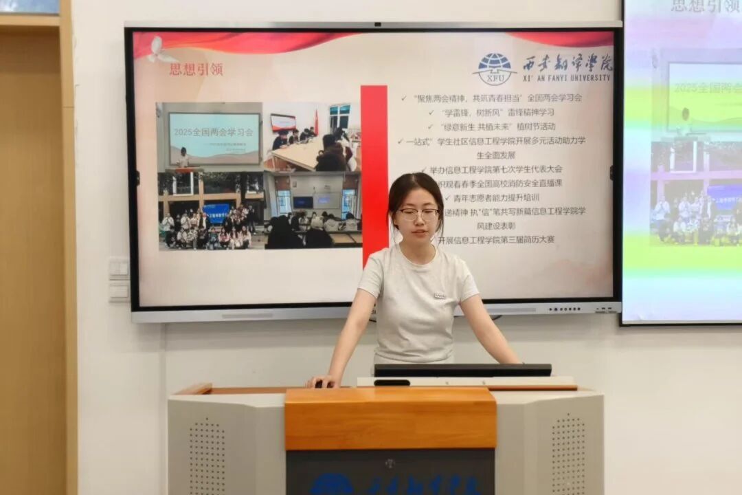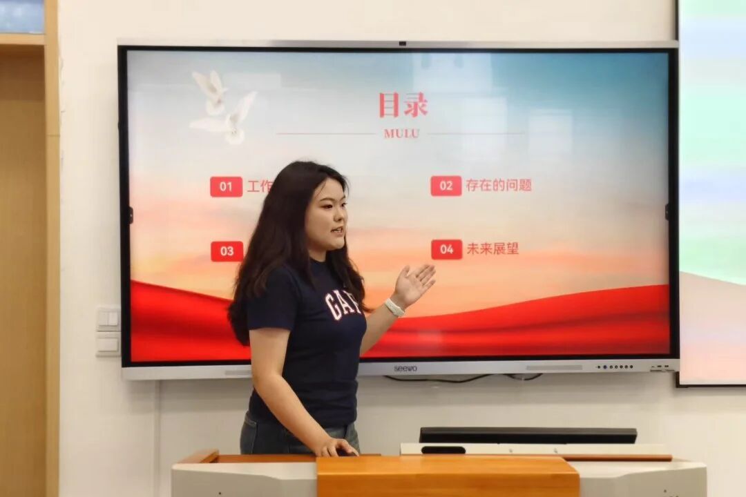 首先,团总支学生副书记陆伊岚围绕思想引领、组织建设和品牌活动三个方面,系统汇报了团总支在强化团员意识、推进主题教育、服务青年成长等方面取得的成效。