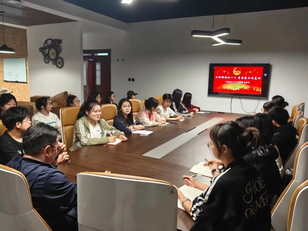 会议伊始,全体团学青干部观看“九一八历史事件”专题影像。影片依详实史实,回溯1931年日军蓄意制造柳条湖事件、进而炮轰北大营的事变历程,助参会者深化历史认知、厚植爱国情怀,从先辈们自发组织抗日武装、浴血抵抗的事迹中,汲取直面挑战的精神力量。