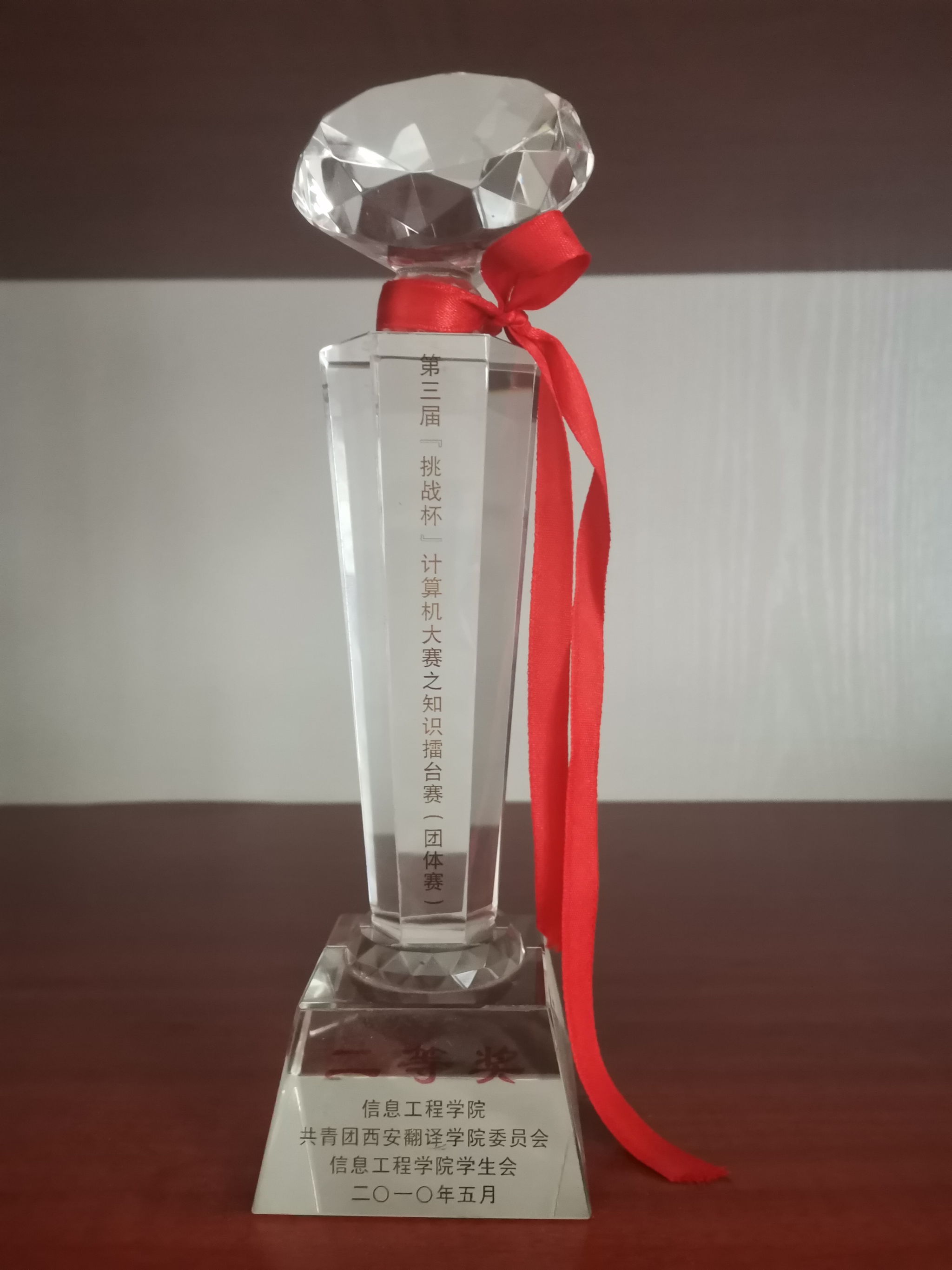 2020年获得西安翻译学院大学生防疫知识竞赛优秀组织奖。
