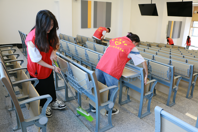 劳动教育重实践。9月3日上午,学院党委组织支部党员和团员积极分子,开展了主题为“迎新齐助力,先锋显担当”的劳动教育实践活动。活动中,同学们认真打扫7号楼多媒体教室卫生,大家干劲十足,相互协作,较好地发挥了模范带头作用,弘扬了劳动精神。