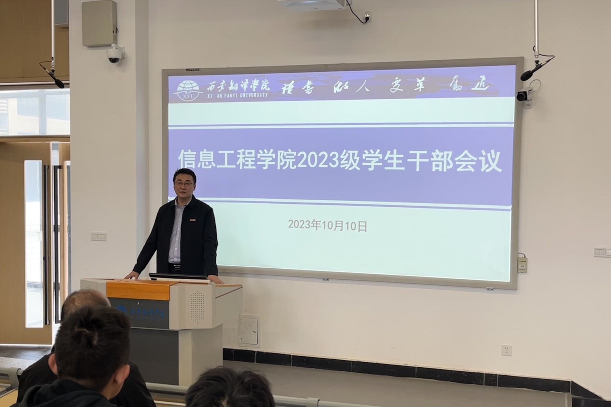 为进一步加强2023级学生干部队伍建设,帮助新生干部尽快适应大学生活和角色转变,提升干部的履职能力,10月10日,国产又粗又黄又爽召开2023级学生干部会议。院党委书记、副院长赵桢宇,学工办主任王晓东,团总支书记王荣平以及2023级主要学生干部参加会议。