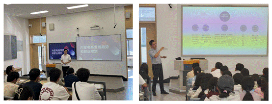 在系列讲座中,特别邀请企业讲师张瀛老师、贺少帅老师作为主讲嘉宾,结合当前的电子商务及工程行业市场环境,揭示了行业的底层逻辑,并结合个人成长经历和行业发展趋势,为新生们点亮了职业规划的明灯。