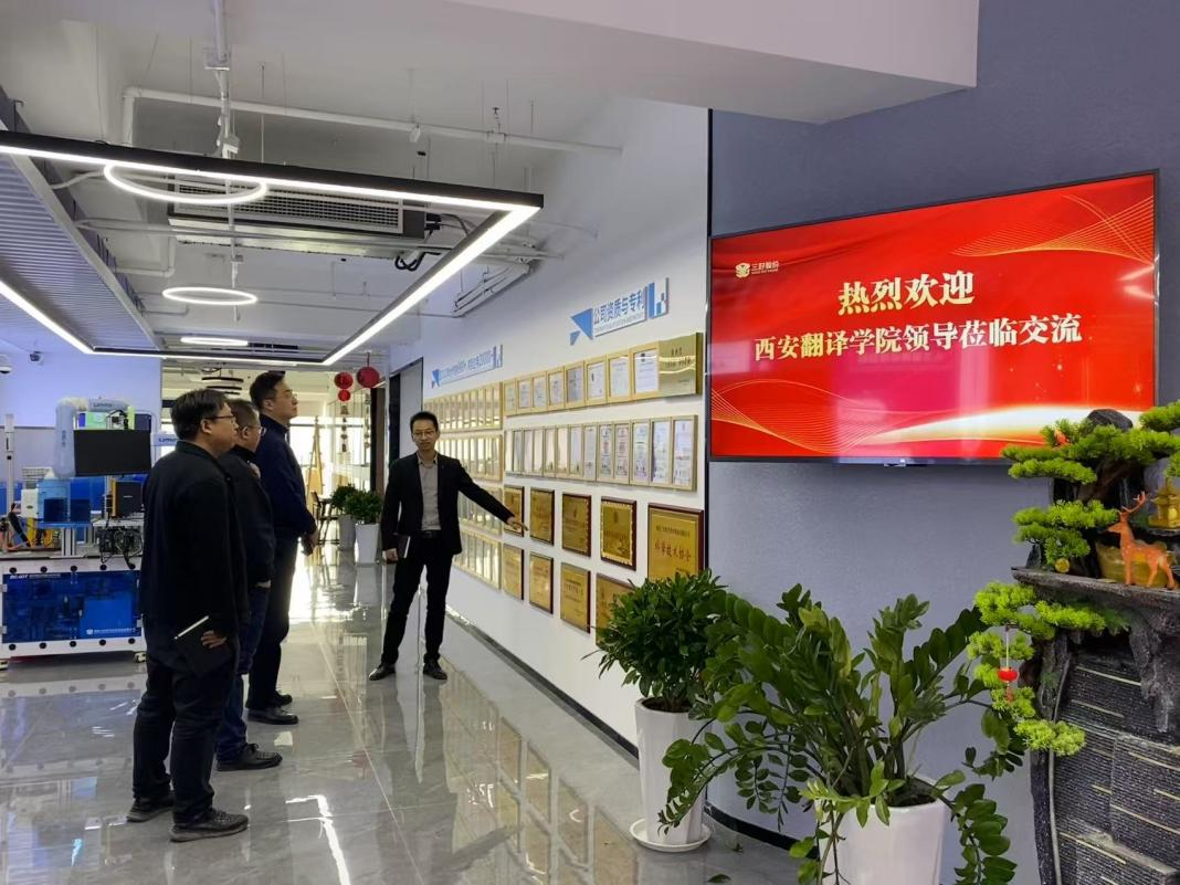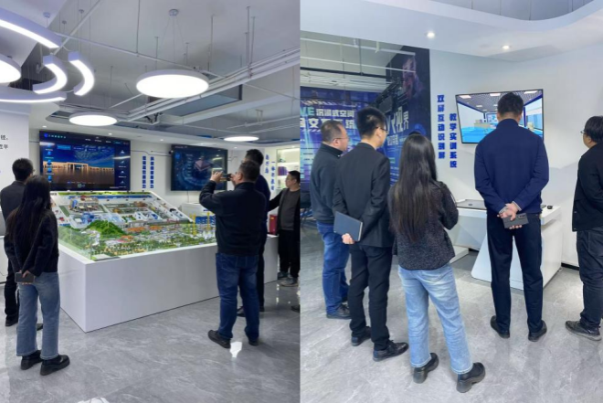 在西安三好软件技术股份有限公司人事部经理高伟栋及其业务部门同事的热情陪同下,赵桢宇书记一行参观了公司的系统展示区域、工程相关模型搭建区域、办公场所、公共空间以及休闲场所。通过实地走访,他们对企业主营业务、工作环境以及整体文化氛围有了更加直观和深入的了解。参观过程中,公司业务人员详细介绍了各类项目的技术亮点和应用场景,让学院代表对企业的技术实力和创新能力有了深刻的认识。