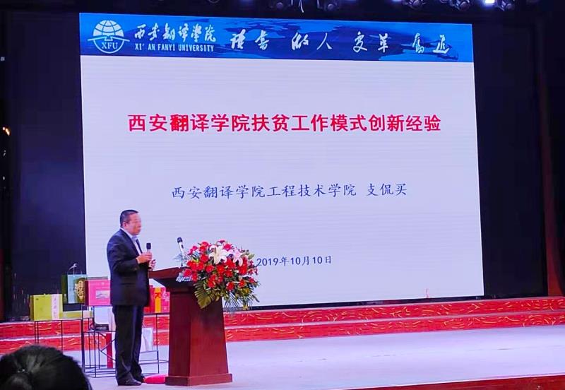 我校工程技术学院副院长支侃买受邀作“西安翻译学院扶贫工作模式创新验验”的主题演讲,我校自“两联一包”、“双百工程”以来在产业扶贫、教育帮扶、消费扶贫、义务培训、扶贫调研等方面的经验受到商洛市各级政府、与会企业及十余所高校的一致肯定与赞扬。我校四支学生团队为天竺山镇三槐村在蜂蜜营销、红色之旅、民宿经营方面的营销计划分别荣获一等奖一项、二等奖一项、优秀奖二项。