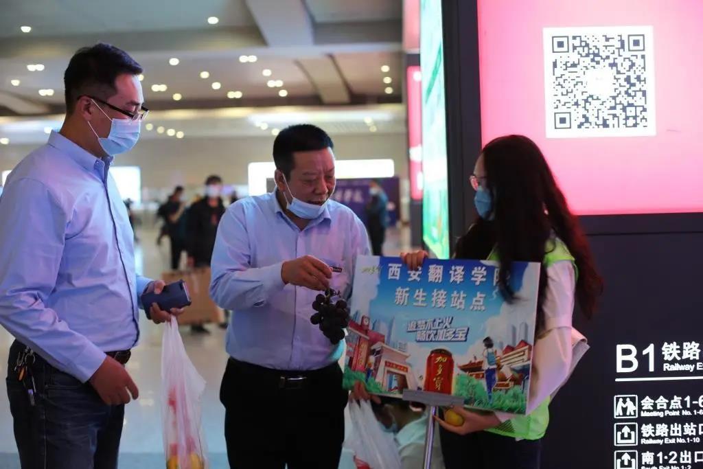 丹桂飘香,喜迎八方学子;秋风送爽,梦想今日启航。西译迎新季,热闹非凡,带着喜悦与梦想的2020级新生从祖国四面八方汇聚西译,开启崭新的大学生活。我院领导高度重视迎新工作,9月23日下午,我院教学副院长支侃买、行政副院长赵桢宇、辅导员刘剑英一同到西安北客站看望慰问我院迎新接站的工作者、志愿者以及到站新生和家长,并与他们亲切交谈。