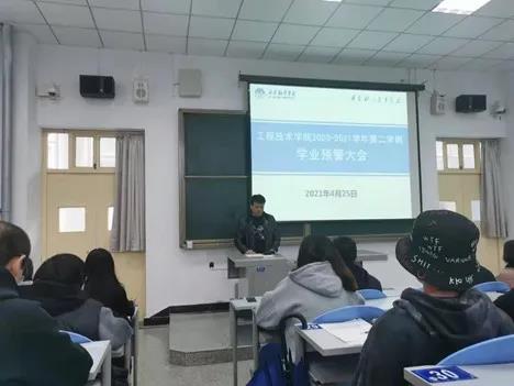 4月25日下午,我院在723T教室召开了工程技术学院2020—2021学年第二学期学生学业预警大会,本次会议由综合办主任胡亚明主持,教学副院长支侃买、行政副院长赵桢宇、综合办副主任刘辉,相关辅导员以及全体受预警学生参加会议。