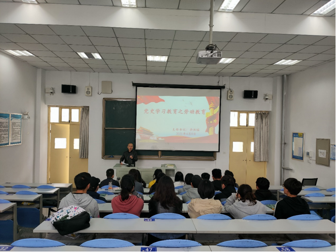 2021年4月19日,工程三支部书记李洪福组织召开党史学习教育之劳动教育主题观摩班会。班会从习近平新时代中国特色社会主义思想对劳动教育的发展展开学习。