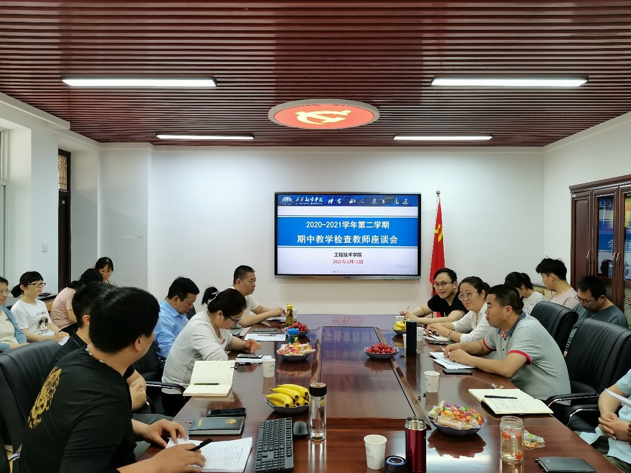 5月12日下午工程技术学院在会议室召开2020-2021学年第二学期期中教学检查教师座谈会。工程技术学院院长葛海波、教学副院长支侃买,党委副书记、副院长赵桢宇及20名教师代表参加会议。会议由综合办主任胡亚明主持。