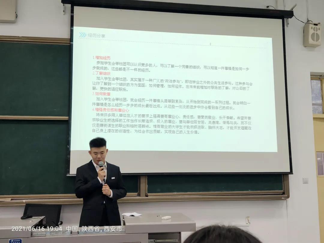最后,十佳主席教育学院任若源带来了经验分享。她作为教育学院学生会主席,积极参加各类校园文化活动。从各种工作中产生的感想和经验,都是自身成长最宝贵的财富,同时也学会了真诚做事,真心对人的道理。