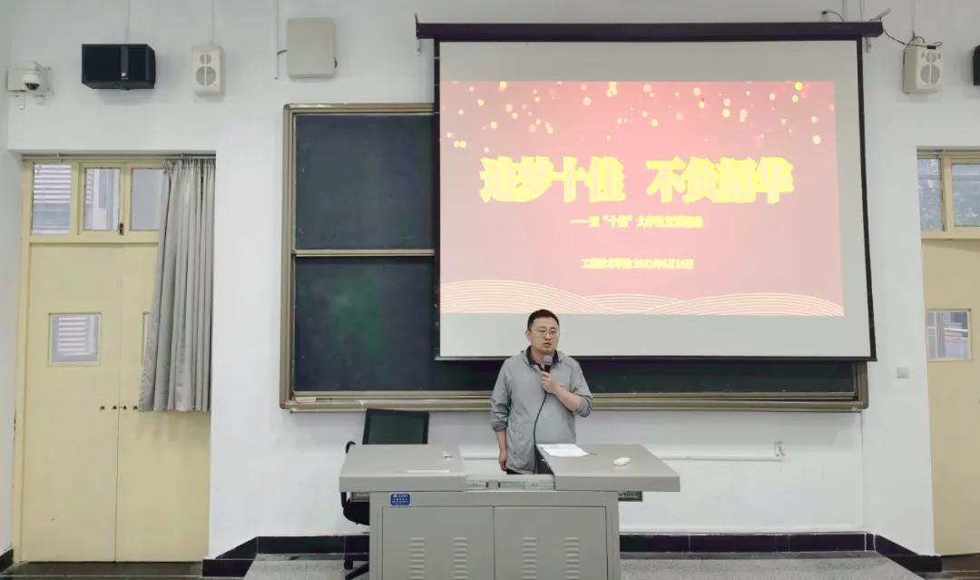 为发挥优秀学生的示范与榜样作用,教育引导广大学生向先进学习,6月16日晚自习,我校十佳宣讲团5位成员来到工程技术学院进行宣讲。工程技术学院团总支书记王荣平、团总支副书记董佳敏以及150余名学生代表参加了此次宣讲会。