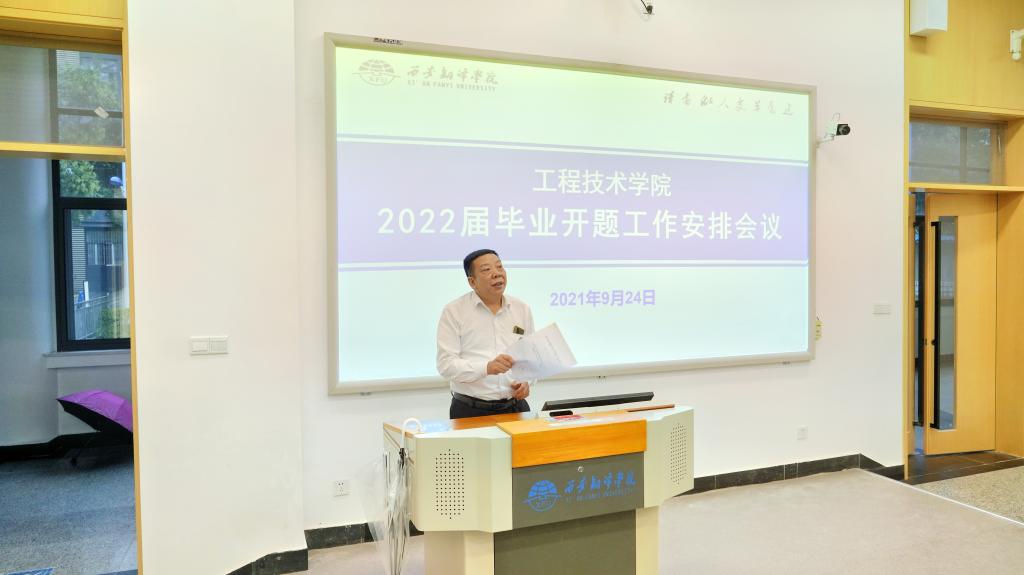 为了落实学校本科毕业论文(设计)首次开题答辩工作,加强毕业设计过程管理,切实提高毕业论文(设计)质量,9月24日下午,工程技术学院举行2022届本科毕业论文(设计)开题答辩等工作相关事宜工作会议。副院长支侃买、各专业负责人、全体本科论文指导教师及毕业班辅导员参加会议。会议由综合办主任胡亚明主持。