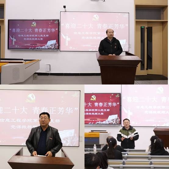 学院党委委员王晓东、一支部书记崔璐、团总支书记王荣平作点评,他们从微党课选题、党史知识、内容呈现方式、理论宣讲技巧等方面做了总结,在鼓励学生的同时也提出信工院学子的微党课应紧紧围绕自身与党的联系为出发点、有逻辑地进行展开,从百年党史的精神中汲取奋斗的力量!