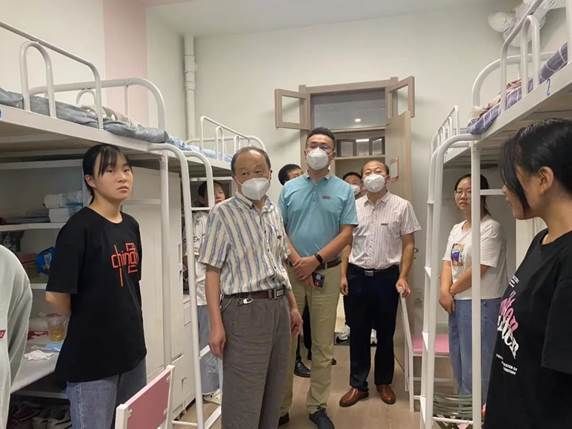 学院院长葛海波、行政副院长,党委副书记赵桢宇、综合办主任胡亚明、副主任王晓东、团总支书记王荣平及新生辅导员一行深入2022级新生宿舍,在关心新生入学的情况的同时了解和解答了新生关注的问题,上好入学别开生面的第一颗,给予新生们最温暖的问候和殷切的希望。慰问过程中,各位领导老师亲切的与大家进行着友好的交流,事无巨细的询问同学们的各种情况,包括但不限于同学们到校后的生活情况、对学校生活是否适应习惯、对同学们兴趣爱好的询问与鼓励。最后,各位领导也向各位新同学提出了期许与鼓励,希望同学们在未来的大学生活中努力学习,前途似锦!