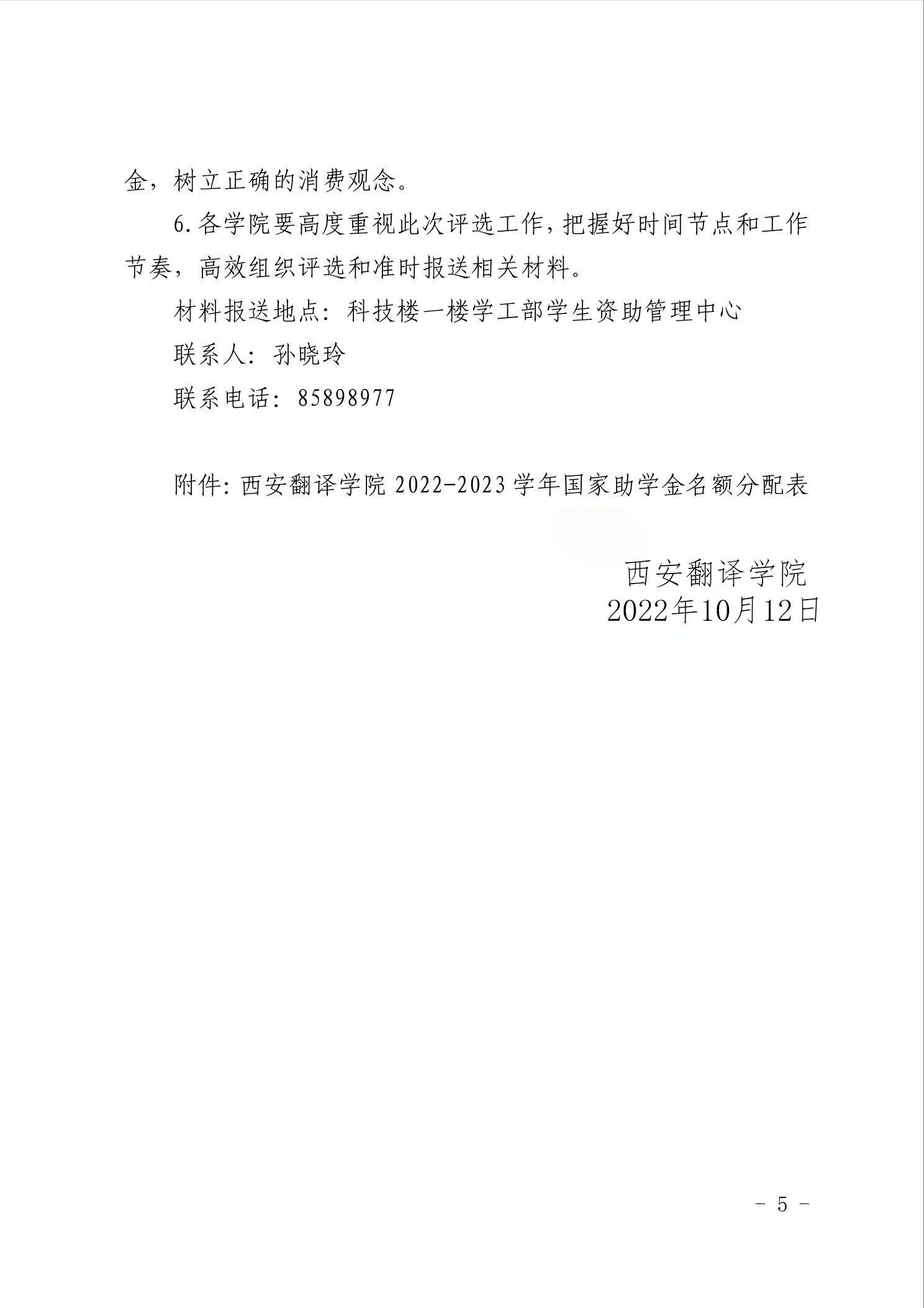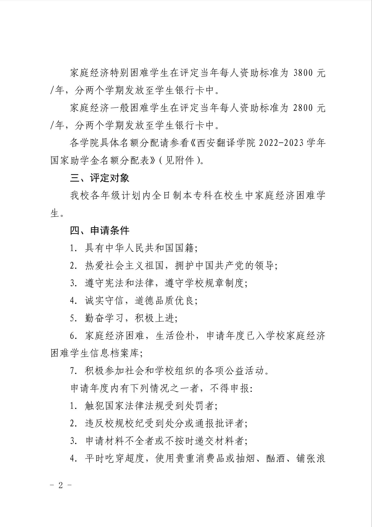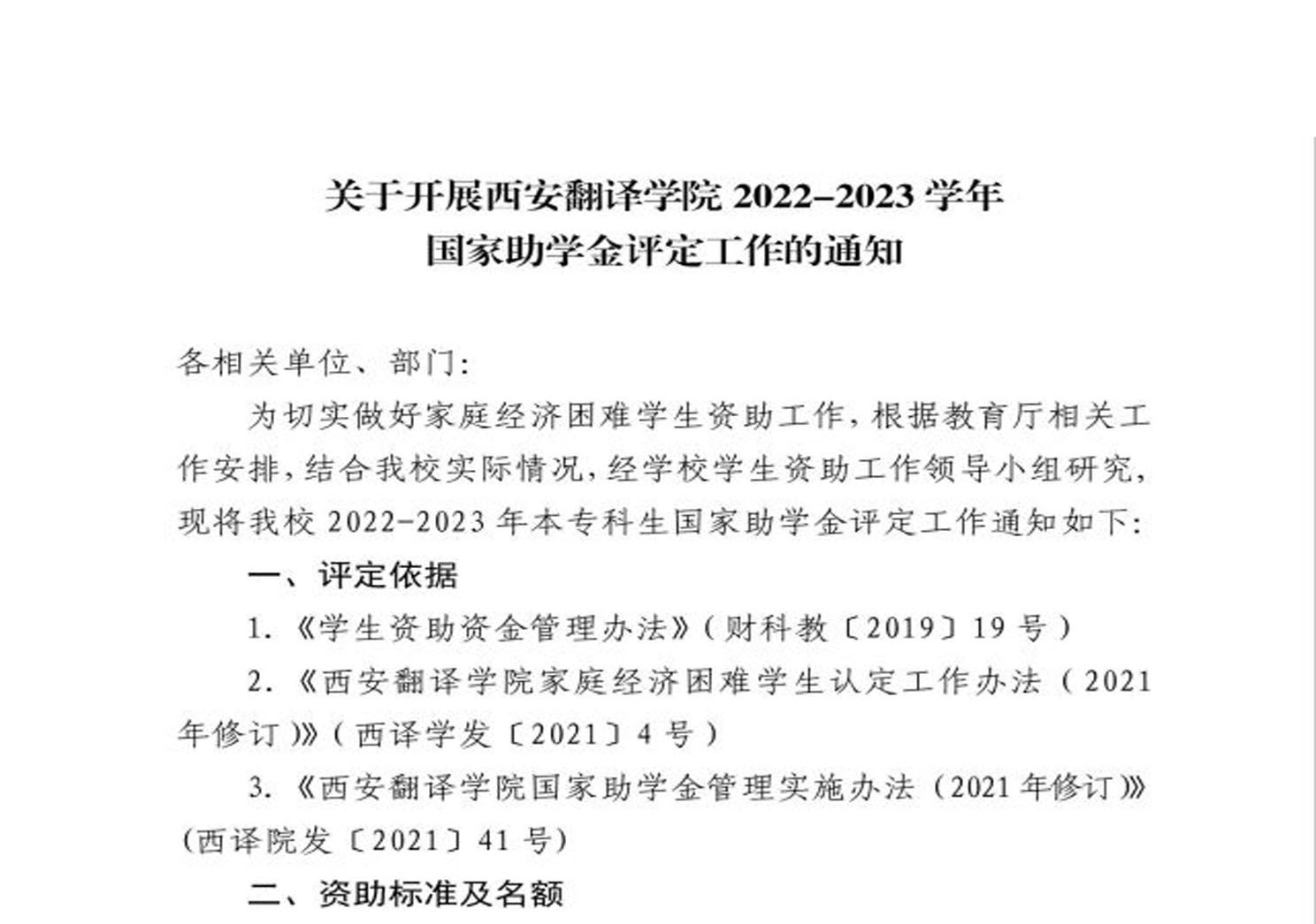 关于开展西安翻译学院2022-2023学年国家助学金评定工作的通知