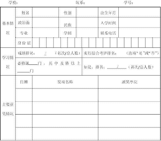 推荐 理由 (100字) | 推荐人(辅导员或班主任)签名: 年 月 日 |